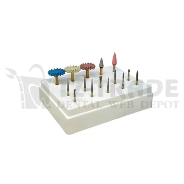 סט בוררי יהלום איכותי לליטוש והברקה קומפוזיטים וחרסינות. אריזה: 3 מברשות יהלום טוויסט, 2 גומיות, 10 בוררים